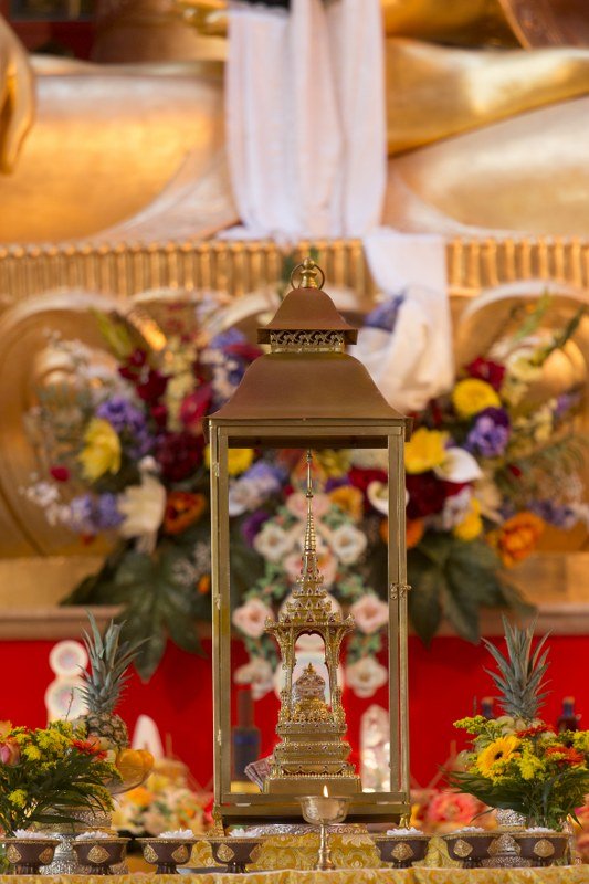 Le Bouddha mourut à Kushinagar, en Inde. Lorsqu’il entra en parinirvana – le décès d’un être éveillé – son corps fut incinéré. Après la crémation, ses reliques furent divisées en huit parts, distribuées aux représentants des différents royaumes indiens de l’époque, qui les placèrent dans des stoupas reliquaires.